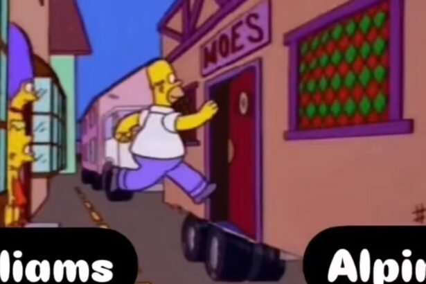 Homero salta de su casa en movimiento al famoso bar de Moe, también sobre ruedas. Así van los fans de Colapinto: apasionados de Williams, ahora pegan el salto en masa para hinchar por Alpine.