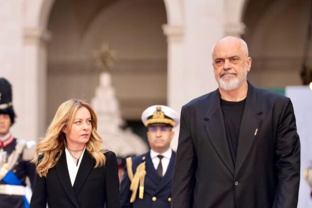 El saludo entre la primera ministra de Italia, Giorgia Meloni, y su…