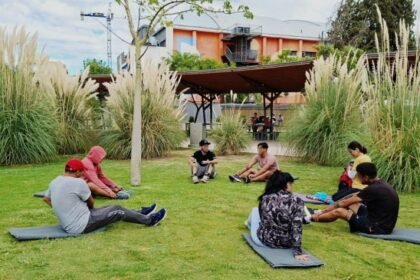 Todos jueves, durante una hora, la respiración consciente, la relajación, las elongaciones, los desbloqueos, las técnicas para lograr el equilibrio…