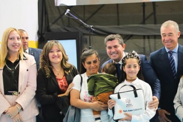 La primera etapa de la entrega se llevó a cabo en el Estadio Multipropósito Vicente Alejo Chancay, donde 756 estudiantes de 8 escuelas primarias del departamento Pocito recibieron sus equipos.