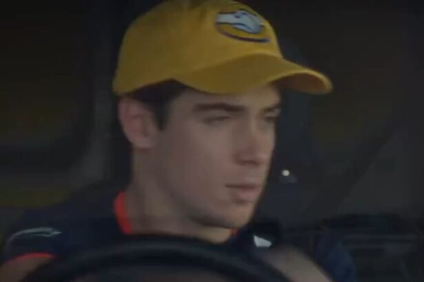 Mientras, Colapinto llega al box, escuchando música y tomando algo. De repente ve al repartidor, vestido de F1, en un televisor, firmando autógrafos. Se da cuenta que falta su traje y encuentra el gorro amarillo de Mercado Libre. Y toma la única decisión lógica para un corredor: se sube a la camioneta de Meli, maneja a toda velocidad por el circuito de pruebas y alcanza al repartidor antes de que arranque las pruebas. “Sos rápido vos eh, que nave la tuya”, le dice Colapinto al repartidor de Mercado Libre.