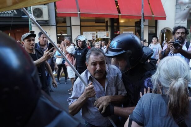 Tras la primera detención, manifestantes cortaron el tránsito en el cruce de la avenida Rivadavia y Combate de los Pozos, en la esquina del Congreso y del edificio anexo, lo que sumó tensión a la situación. Denunciaban que una jubilada había sido herida.