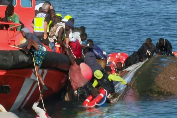 Imágenes de la televisión pública española mostraron el cayuco completamente volcado, mientras decenas de migrantes en pánico trataban de trepar por el casco para saltar a la embarcación de salvamento Marítimo que estaba al lado. Otros permanecían en el agua agarrando los flotadores salvavidas que les lanzaban, en medio de un gran desconcierto.