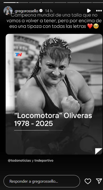 La lamentable noticia del fallecimiento de Alejandra «Locomotora» Oliveras a sus 47 años, séxtuple campeona internacional de boxeo, conmovió profundamente tanto al ámbito deportivo como al del espectáculo. Por ello, numerosos famosos manifestaron su dolor en redes sociales, despidiendo con emotivos mensajes a la legendaria deportista.