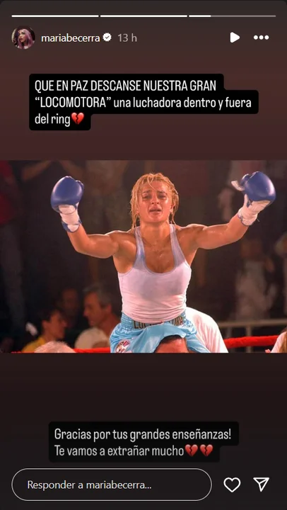 María Becerra, quien compartió la serie “En el barro” junto a la boxeadora, le dedicó unas sentidas palabras: “Que en paz descanse nuestra gran ‘Locomotora’. Una luchadora dentro y fuera del ring«.