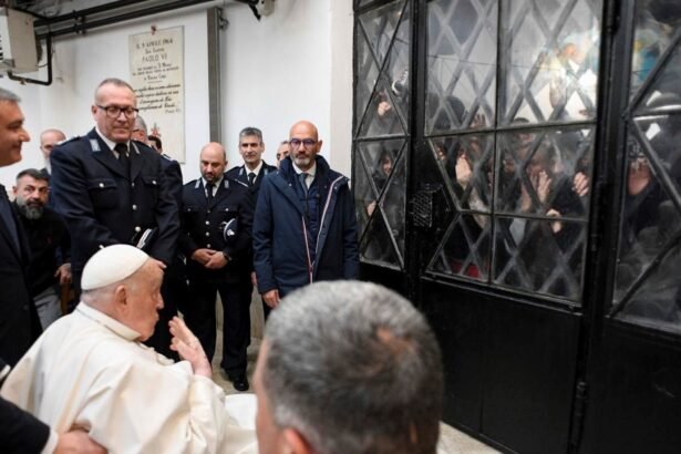 El pontífice caminó acompañado por los guardias hasta la “rotonda” donde convergen los cuatro brazos del centro penitenciario. Desde las celdas y los pasillos, los arrestados se agolparon y gritaron “¡Viva el Papa!” saludándolo con cariño.