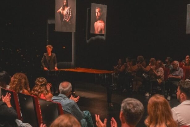 La propuesta reunió a la pianista española María José de Bustos y al fotógrafo colombiano Óscar Perfer, en una creación producida por el Teatro Mayor Julio Mario Santo Domingo de Colombia. La puesta trascendió el formato tradicional del concierto para convertirse en una polifonía visual, donde las fotografías de Perfer —de impronta pictórica y mirada contemporánea— dialogaron con la interpretación pianística de De Bustos, que tradujo en música el pulso interno del universo literario del autor colombiano.