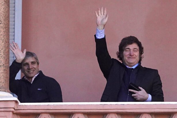 Milei salió al balcón secundado por buena parte de sus ministros. Junto al libertario estaban el vocero Manuel Adorni; la ministra de Seguridad, Patricia Bullrich; la ministra de Capital Humano, Sandra Pettovello; y el de Desregulación, Federico Sturzenegger.