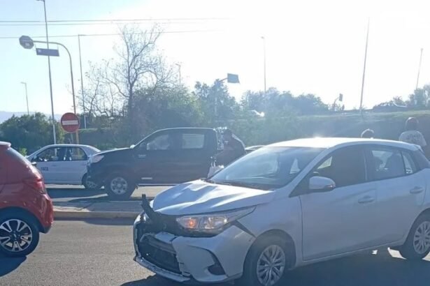 Este martes ocurrió un fuerte choque en la esquina de Lateral de Ruta 40 -Sur- y Abraham Tapia en Trinidad. Una motorista terminó herida al chocar con un auto.