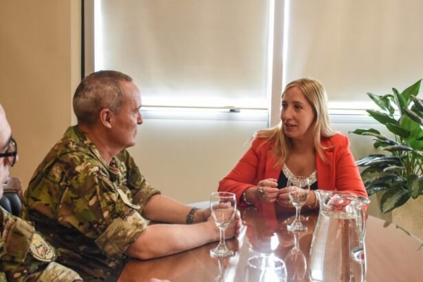 La ministra Laura Palma, en representación del Ministerio de Gobierno, encabezó el primer encuentro formal con el coronel Pablo José Molina, quien asumió en diciembre como jefe del Regimiento de Infantería de Montaña 22, sucediendo al coronel Rubén Gastón Patera.