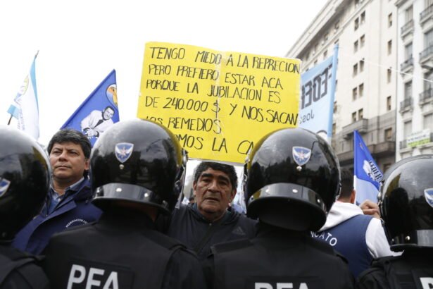 Protesta frente al Congreso de la Nación por la ley jubilatoria. Foto: Francisco LoureiroProtesta frente al Congreso de la Nación por la ley jubilatoria. Foto: Francisco Loureiro