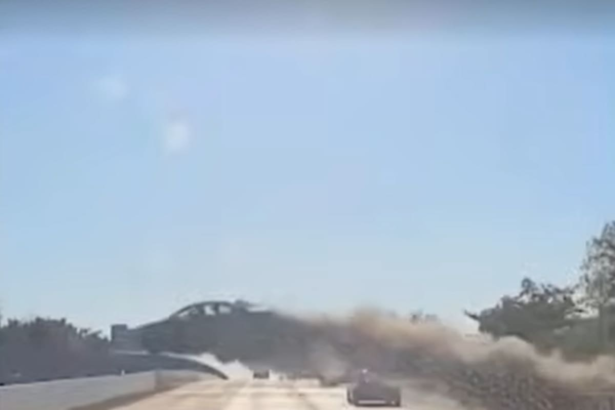Las imágenes difundidas por LN+ registraron el instante en que su auto, a toda velocidad, sobrevoló cuatro carriles y terminó estrellándose al otro lado de Sunrise Highway entre árboles.