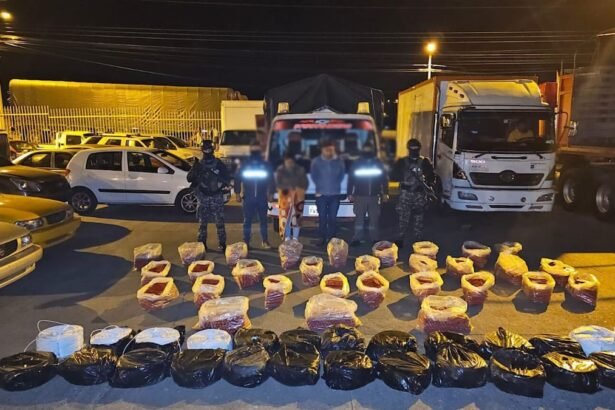 Los detenidos son un hombre y una mujer, identificados como Luis Aníbal Ch. B. y Karla Esmeralda Ch. P., quienes transportaban el material envuelto en bolsas de plástico y sacos de nylon a bordo de un pequeño camión, según imágenes difundidas.