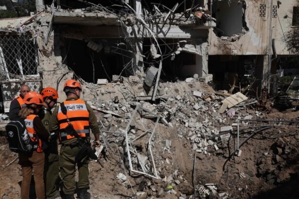 Servicios de emergencia israelíes rodean los escombros de un edificio tras el ataque de un misil iraní este martesJACK GUEZ – AFP