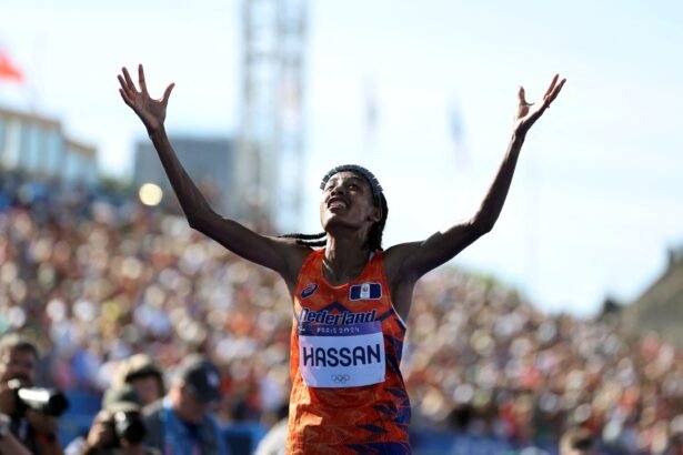 La neerlandesa de origen etíope, de 31 años, se había quedado con la medalla de bronce en los 5.000 y 10.000 metros, pruebas que ganó en Tokio 2020, y ahora obtuvo el tan ansiado oro en la competición más exigente del programa atlético. Lo logró apenas 34 horas después de correr por última vez en la pista del Stade de France. Se volvió a calzar las zapatillas este domingo y, en un recorrido decorado por los diferentes atractivos turísticos de París, fue más rápida que todas para terminar alzando los brazos y festejando con la mirada puesto en el cielo.