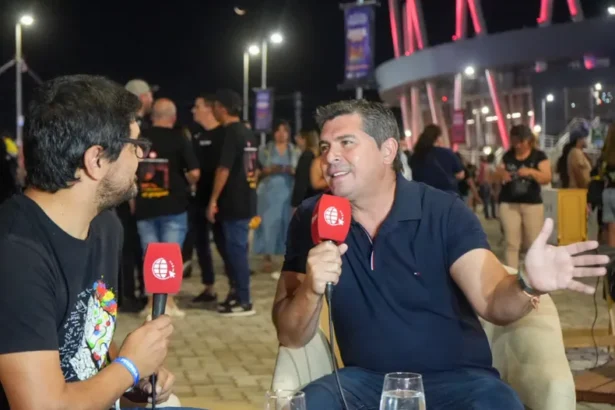 El gobernador Marcelo Orrego visitó el stand del diario Tiempo de San Juan y dialogó con el periodista Jorge Balmaceda, mostrando su satisfacción por el gran nivel de convocatoria de la Fiesta Nacional del Sol. Destacó que se cruzó con numerosos visitantes que llegaron especialmente por la celebración. “La Fiesta del Sol representa nuestro amor por lo nuestro, por nuestras tradiciones y nuestra idiosincrasia”, afirmó. Posteó que lo que más lo emocionó del show central fueron las canciones sanjuaninas y los guitarreros folclóricos. También resaltó la reactivación de los vínculos con Chile y dejó abierta la posibilidad de volver a subir al escenario a cantar.