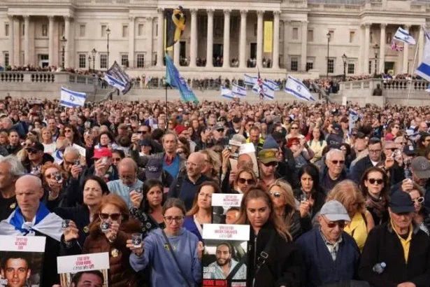 Miles de personas se congregaron este domingo en la Plaza Trafalgar de Londres para conmemorar los dos años desde los ataques de Hamás contra Israel el 7 de octubre de 2023, el más mortífero en la historia del país.
