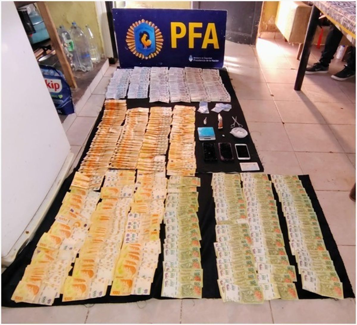 Durante los procedimientos, se concretó la detención del principal sospechoso al tiempo que se incautaron varias dosis de clorhidrato de cocaína fraccionada y lista para su distribución, una suma de dinero cercana a los 2 millones de pesos en billetes de baja denominación producto de las actividades ilícitas, 7 teléfonos celulares, una camioneta, una balanza digital y demás objetos de interés para la causa.