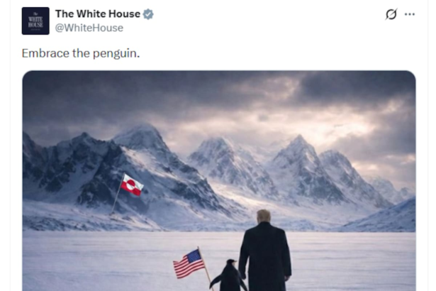 La imagen del pingüino no es un caso aislado. En las últimas semanas, la administración Trump recurrió cada vez más a recursos visuales en redes sociales y a publicaciones generadas con inteligencia artificial para amplificar su mensaje sobre Groenlandia.