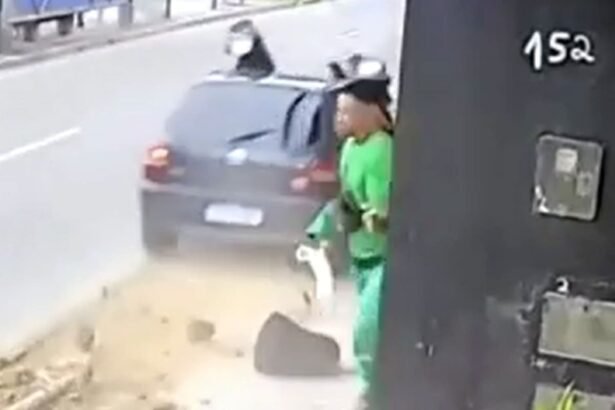 Según declaraciones al portal G1, Erick Danilo Santos esperaba ser recogido por un colectivo que pertenece a la empresa de recolección de residuos para la que trabaja mientras tomaba café sentado en la vereda.