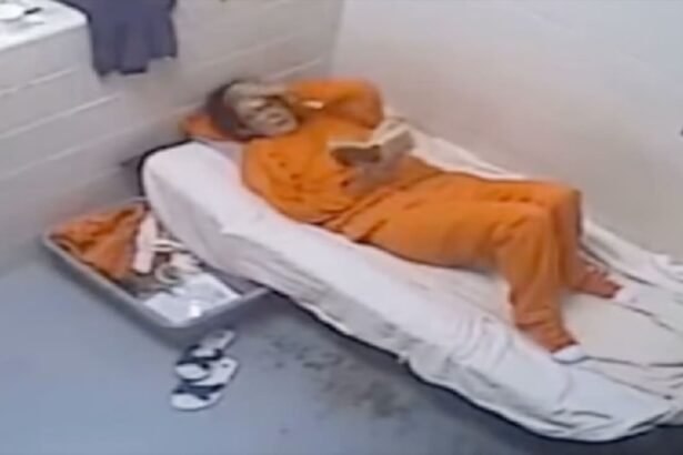 Luego, se traslada del lavabo a su cama cubierta por una sábana desacomodada que intenta volver a colocar, mientras dobla un mameluco naranja de reclusa. Una vez que dobló la ropa, se acostó boca arriba y se puso a leer un libro que tenía abierto sobre el catre, según el video.