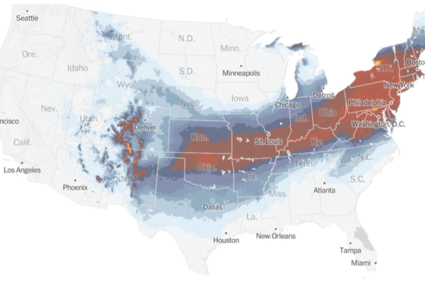 “Con el frío extremo en el norte y la tormenta, la mitad de los estadounidenses está bajo algún tipo de alerta meteorológica”, explicó Brian Hurley, meteorólogo del Centro de Predicción Meteorológica del Servicio Meteorológico Nacional, con sede en College Park, Maryland.