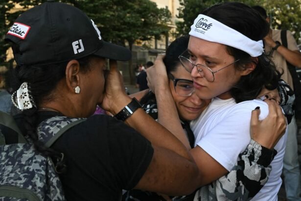 Familiares de presos políticos se abrazan de emoción a la espera de la salida de los presos políticos en la cárcel de El RodeoPEDRO MATTEY – AFP