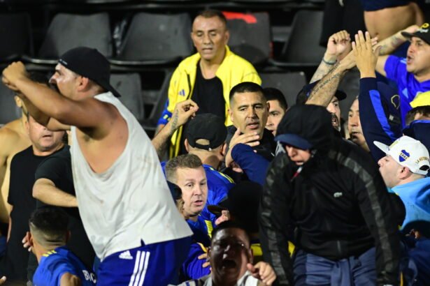 Las imágenes hicieron acordar aquellos momentos de violencia constante en las canchas del fútbol argentino y explicaron, quizás, la decisión de no tener visitantes en los estadios hace muchísimos años. Los hinchas de Boca, Gimnasia de La Plata y la Policía de Rosario empañaron este miércoles una noche que venía para fiesta a partir de la actitud de algunos fanáticos del Xeneize, que antes de empezar el segundo tiempo lanzaron butacas desde la platea alta hacia la popular del Lobo. La intervención policial solo agravó los hechos por sus balas de goma y, en un momento icónico, el presidente Juan Román Riquelme se metió entre los fanáticos del conjunto azul y oro para frenar la batahola, que duró una media hora.